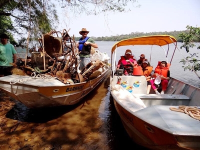Esta semana o Parque Nacional de Ilha Grande e seus parceiros foram informados de que o projeto Rio + Limpo, promovido pelo ICMBio, CORIPA em parceria com Itaipu Binacional e Prefeituras Municipais, chegou à final do Prêmio ANA 2014. Após terem alcançado a semi-final, o Projeto recebeu a visita de uma auditora da Agência Nacional das Águas, que pôde conhecer a região do arquipélago de ilha grande no rio Paraná e participar deste projeto que já promoveu 18 etapas ao longo destes três anos, que já reuniu cerca de 1.300 voluntários e recolheu um total de aproximadamente 70.000 kg de resíduos, entulhos e demais materiais que degradam e poluem os rios que banham as ilhas do Parque Nacional.