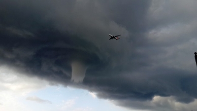 Ele calcula que a tromba d’água se formou a cerca de 300 metros da praia. O tempo estava frio e nublado e chegou a chuviscar em alguns momentos. Alcântara fotografou o momento em que um avião passou perto do fenômeno, em direção ao aeroporto da cidade.