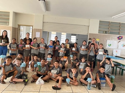 No dia 31 de agosto, as analistas ambientais do Consórcio Aline e Maria Cristina realizaram uma aula prática sobre compostagem com os alunos do 3º ano da Escola Municipal Irmã Dulce de Esperança Nova. Ter uma composteira em casa, proporciona um destino eminente para os resíduos orgânicos, vez que os mesmos que seriam descartados nos aterros sanitários ao passar pelo processo da compostagem serão transformados em adubo natural, podendo assim ser utilizado para fertilização dos solos sem a possibilidade de contaminação do meio ambiente.