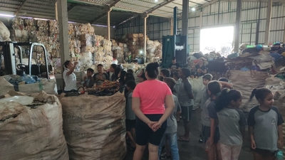 No dia 18 de setembro, para finalizar o ciclo de visitas técnicas do 'Projeto União faz a Vida' dos alunos do 3 ano da Escola Municipal Irmã Dulce, foi realizada uma visita técnica ao Centro de Coleta Seletiva Elmu no município de Pérola. Os educadores do Grupo Elmu explicaram aos alunos temas como a cadeia produtiva do papel, desde a extração da matéria prima da natureza até a reciclagem e seu retorno na fabricação de um novo produto. Também apresentaram a metodologia de trabalho, recebimento, separação, prensagem e comercialização dos materiais recicláveis recebidos do município de Esperança Nova. Os alunos puderam compreender a importância de se realizar a pré lavagem dos materiais recicláveis para retirar restos de alimentos (passar água) fazendo assim com que o material seja mais valorizado.