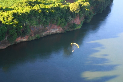 Segundo o chefe do Parque Nacional de Ilha Grande, Romano Pulzatto Neto, o melhor ângulo para contemplar o arquipélago em toda a sua grandeza é do alto. Por isso, a Expedição Ilha Grande contou com cinco paramotores, que sobrevoaram as ilhas, canais e lagoas da unidade de conservação (UC). Uma das lagoas mais inacessíveis e belas da Ilha Grande, a Lagoa Azul, foi destaque da expedição. Do céu, o piloto de paramotor Marcelo Vascelai descreveu o momento da seguinte forma: "É uma oportunidade mágica poder estar aqui e uma das coisas mais emocionantes de se ver".