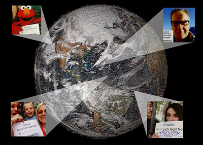 Na última quinta-feira (22), exatamente um mês depois da data comemorativa, a surpresa ficou pronta: a NASA divulgou uma em forma de mosaico, composta por mais de 36 mil fotos de pessoas que participaram da brincadeira.