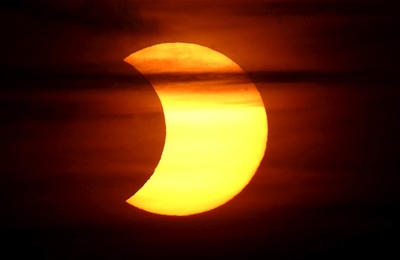 O eclipse ficará visível quando a Lua passar em frente ao Sol, encobrindo apenas metade de sua luz brilhante, ao final da tarde de 23 de outubro.